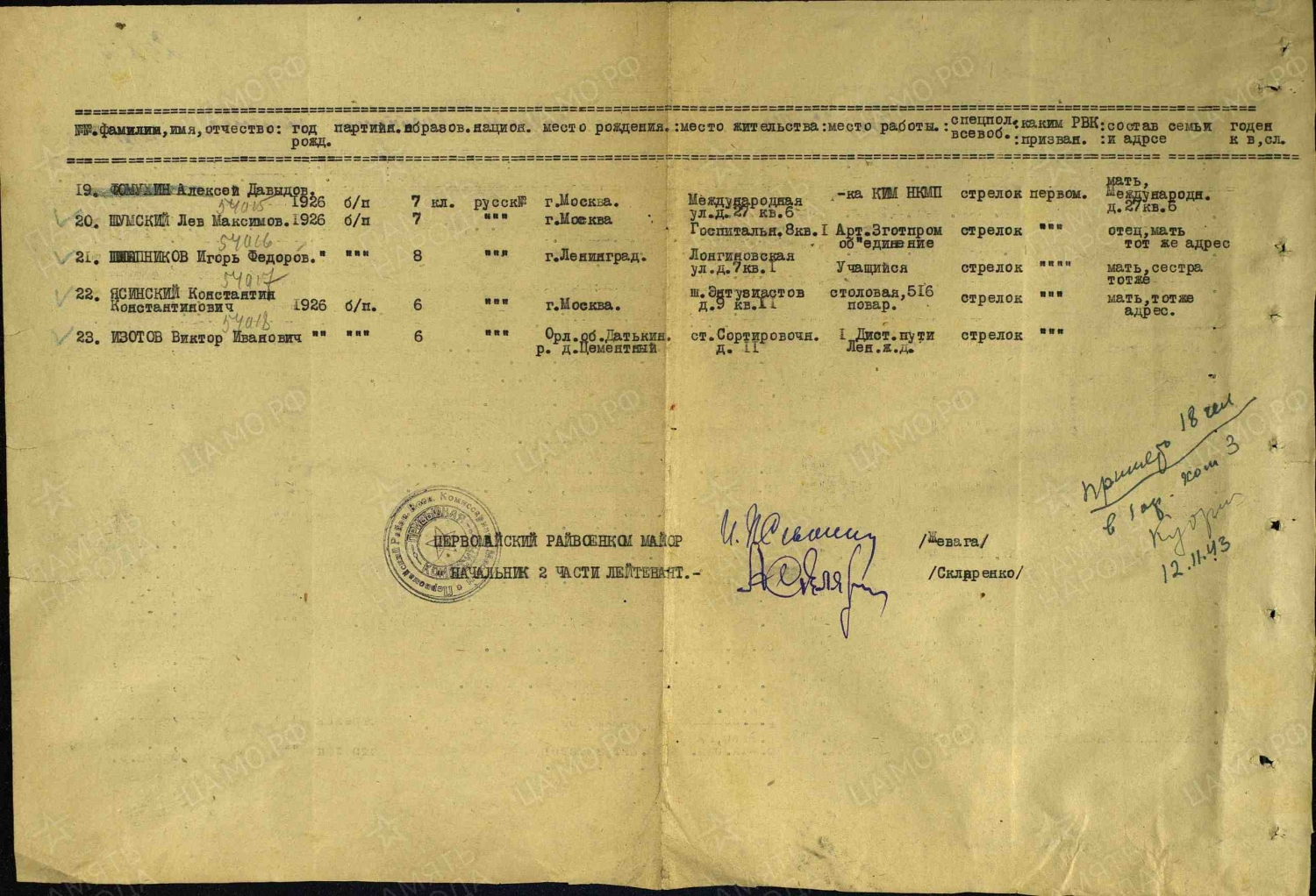 С июня 1944 по май 1945 гг. служил на Ι Белорусском фронте, в ΙΙΙ ударной армии, 70-й Гвардейском отдельном тяжелотанковом Свирском полку. Работал в ВИАМ с августа 1953 г. заместителем начальника лаборатории. Лауреат премии Совета Министров РФ.