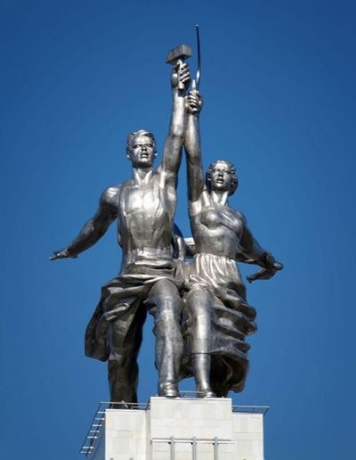 - За этим скрывается интересная история. Кто-то доложил вождю, что в очертаниях развевающегося платья и косынки монументальной колхозницы угадывается замаскированный профиль Троцкого. Дескать, на заводе, где изготавливали памятник, орудует группа троцкистов-вредителей. Вот Сталин и поехал ночью к памятнику, осмотрел его, после чего распорядился наказать тех, кто ввел его в заблуждение. На самом деле монумент ему очень понравился и успешно экспонировался на международной выставке в Париже, по завершении ее работы Сталин отдал приказ вернуть монумент, невзирая на просьбы французов оставить памятник рядом с Эйфелевой башней. Вождь рассудил здраво: символы могущества страны продавать или отдавать за рубеж нельзя.