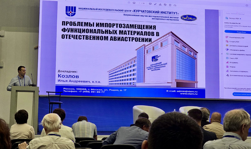 Специалисты нашего института представили свои доклады в трех секциях: «Фундаментальные основы химической науки», «Химия и технология материалов», «Физико-химические основы металлургических процессов». Особенно стоит отметить выступления: Павла Панина с докладом о металлопорошковых композициях из жаропрочных интерметаллидных сплавов алюминидов титана для аддитивных технологий (грант РНФ № 24-19-00717 https://rscf.ru/project/24-19-00717/), Дениса Сидорова с докладом на тему: «Начало пиролитического разложения метилсилана и метилхлорсилана», Ильи Козлова, рассказавшем о проблемах импортозамещения функциональных материалов в отечественном авиастроении, Валентины Партушевой с докладом на тему: «Высокотемпературные стеклокерамические покрытия для авиационной и атомной отраслей промышленности», Алексея Исаева, доложившем о современном состоянии разработок клеевых материалов для авиационной техники в Российской Федерации.