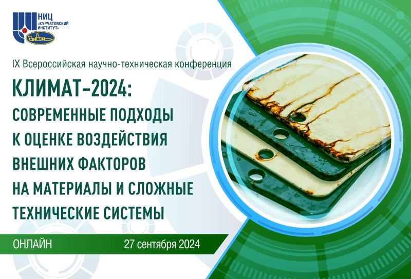 27 сентября 2024 года НИЦ «Курчатовский институт» – ВИАМ проводит IX Всероссийскую научно-техническую конференцию «Климат-2024: современные подходы к оценке воздействия внешних факторов на материалы и сложные технические системы» в онлайн-формате.