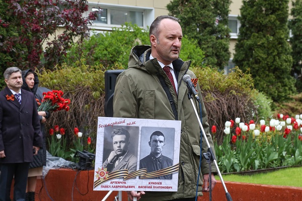 Герой Российской Федерации Алексей Романов в своем выступлении отметил: «Глядя на вас, стоящих в этом стройном ряду с портретами своих родных и близких, защищавших нашу страну в годы войны, я понимаю, что у нас есть будущее. Мы гордимся воинами-победителями, благодаря которым мы живем».