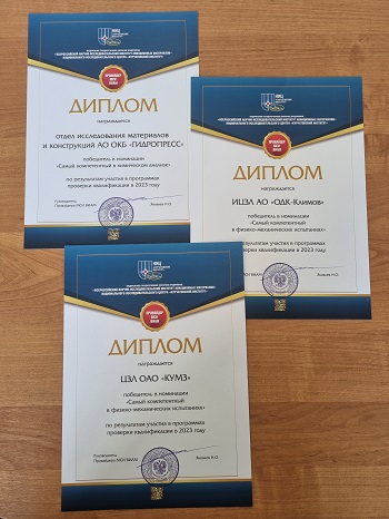 Конкурс проводился по двум номинациям. В номинации «Самый компетентный в физико-механических испытаниях в 2023 г.» первое место разделили ЦЗЛ ОАО «КУМЗ» и ИЦЗЛ АО «ОДК-Климов», а в номинации «Самый компетентный в химическом анализе в 2023 г.» – АО ОКБ «ГИДРОПРЕСС». Поздравляем победителей!