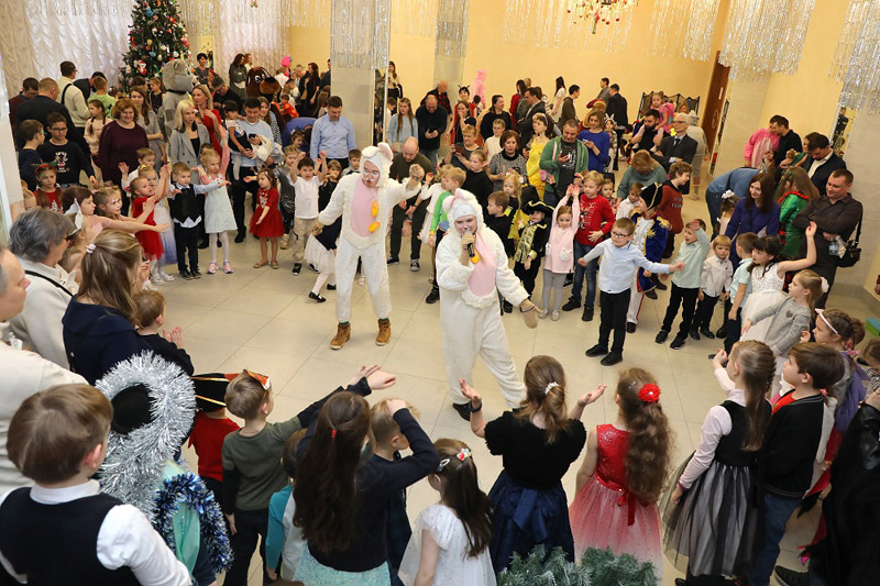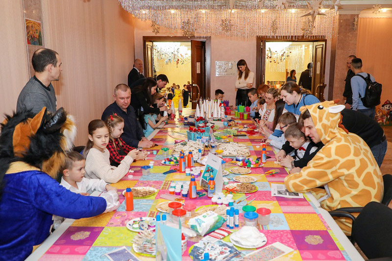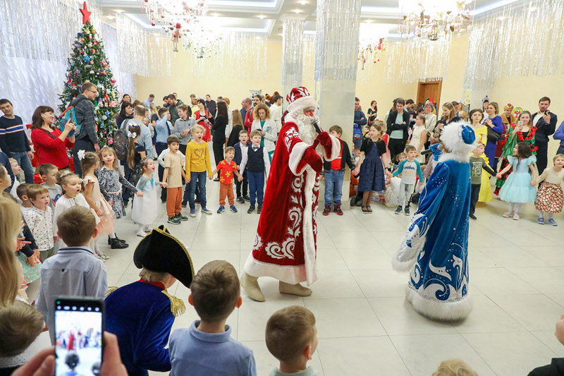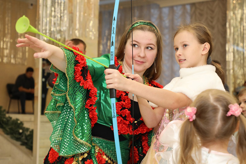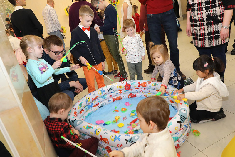 В холле Большого конференц-зала ребят ждала разнообразная и насыщенная праздничная программа с интересными конкурсами, розыгрышами, веселыми викторинами, аттракционами (новогоднее радио, твистер, аэрохоккей, дартс, стрельба из лука), а также красочным представлением с участием Деда Мороза и Снегурочки.