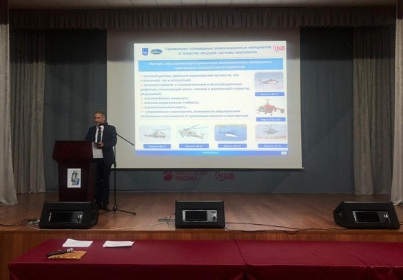 На пленарной сессии Андрей Славин выступил с докладом, в котором отразил этапы развития полимерных композиционных и функциональных материалов разработки НИЦ «Курчатовский институт» – ВИАМ применительно к конструкциям вертолетной техники марок «Ка» и «Ми».