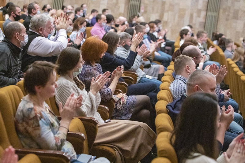 На сцене Большого конференц-зала свою концертную программу представил Показательный оркестр МЧС России. Зрители по достоинству оценили репертуар ансамбля – русские народные песни, эстрадные композиции, песни из любимых советских фильмов, которые традиционно создают новогоднее настроение.