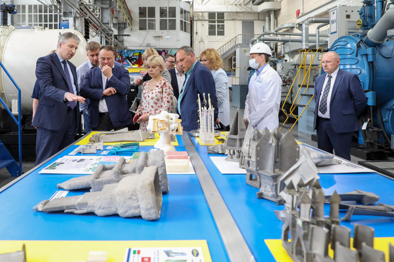 Делегация ознакомилась с производством постоянных магнитов и высокочистых жаропрочных сплавов, защитных покрытий для газотурбинных двигателей, полимерных композиционных материалов и связующих, керамических композиционных материалов, высокоазотистых сталей и др.