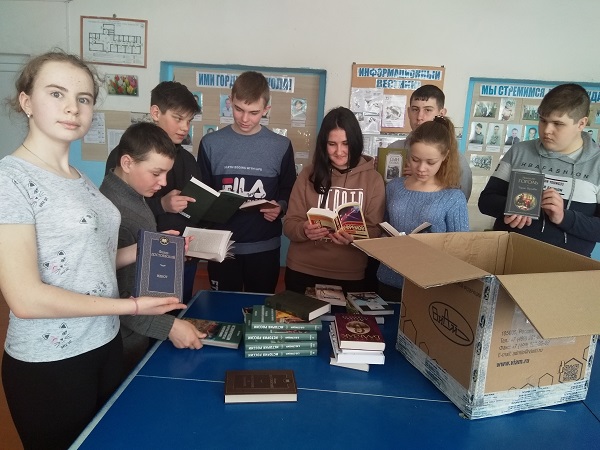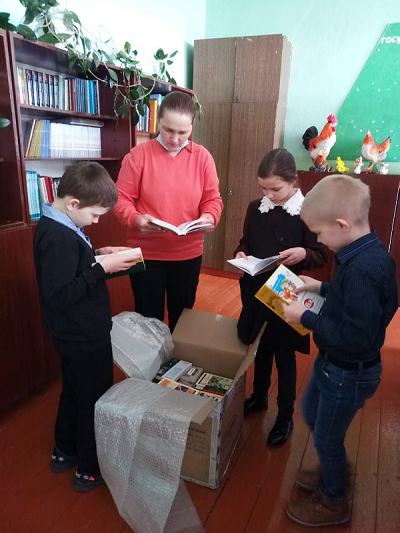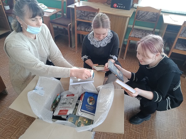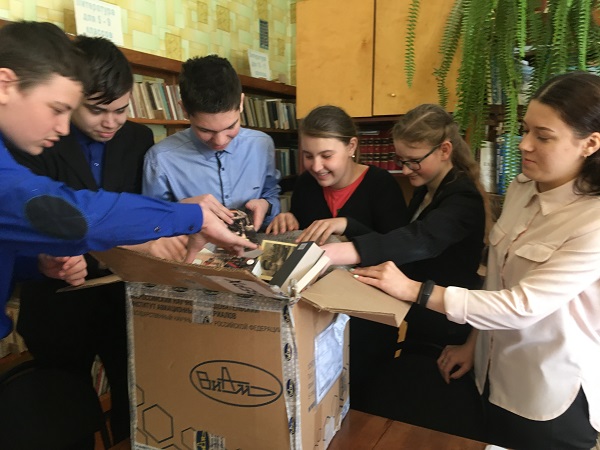 Шарловская средняя школа (Ульяновская область): «Подаренные вами книги различных жанров очень заинтересовали ребят школьного волонтерского отряда «Твори добро», они здесь же отметили некоторые книги как прочитанные ими, а на некоторые уже встали в очередь. Особо заинтересовали книги по истории и «Человек взломанный» – вот такая полярность интересов, а может быть, взаимосвязь. Книги станут очень важным дополнением при проведении уроков и внеурочных занятий, сейчас идет подготовка к участию к акции «игра-1418.рф» и ребята отметили важность и своевременность полученных в дар книг».