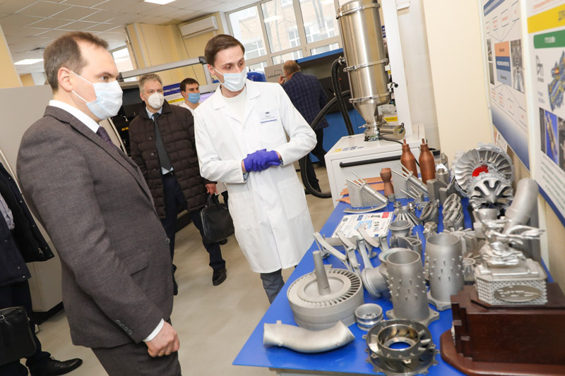 В частности, он ознакомился с научно-производственными комплексами серийного производства литой прутковой заготовки жаропрочных сплавов, термообработки, ионно-плазменных покрытий, литья монокристаллических лопаток ГТД, ГТУ.