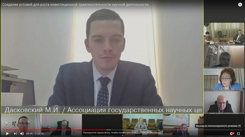 В своем докладе Михаил Дасковский особо отметил результативность деятельности государственных научных центров по созданию и использованию результатов интеллектуальной деятельности, а также рассказал об эффективности реализации государственно-частного партнерства на примере ВИАМ. Кроме того, он внес предложение по совершенствованию механизмов привлечения инвестиций в научную и научно-техническую деятельность путем создания независимых отраслевых фондов научно-технического развития.