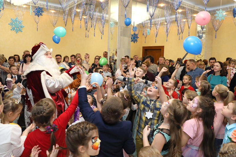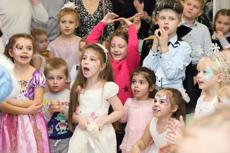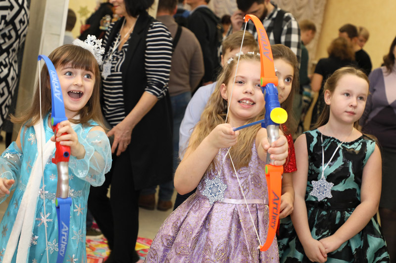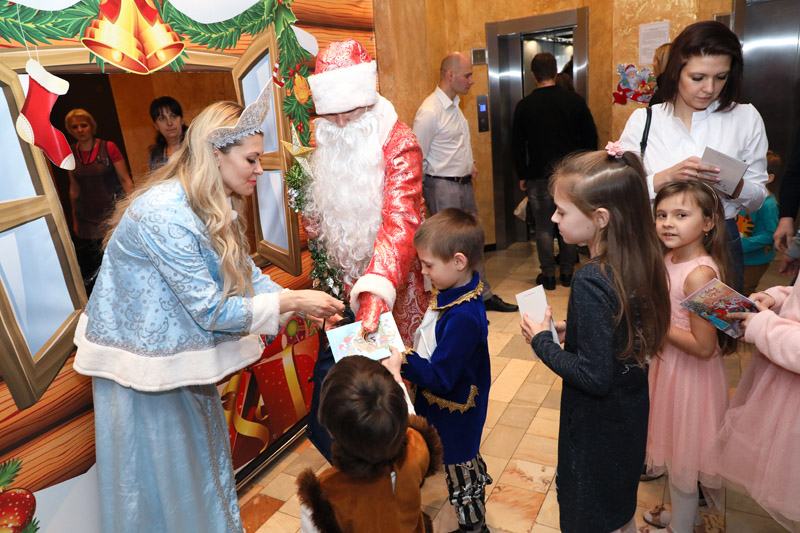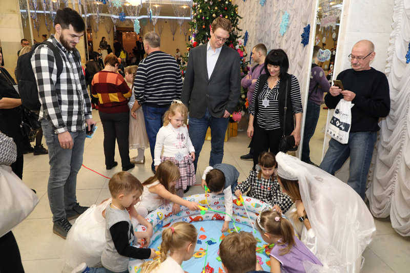 В холле Большого конференц-зала ребят ждала разнообразная и насыщенная праздничная программа с интересными конкурсами, розыгрышами, веселыми викторинами, аттракционами (новогоднее радио, твистер, аэрохоккей, дартс, стрельба из лука) и мастер-классами («веселые раскраски», «новогодняя открытка», «волшебные домики» и др.), а также красочным представлением с участием Деда Мороза и Снегурочки.