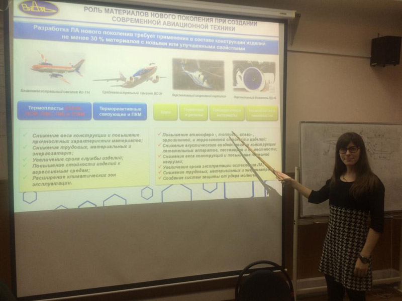 В ходе конференции начальник Лаборатории полимерных материалов со специальными свойствами Всероссийского научно-исследовательского института авиационных материалов (ВИАМ) Валерия Сагомонова выступила с докладом. Она рассказала об основных разработках ВИАМ в области конструкционных и функциональных материалов для изделий вертолетной техники. В докладе прозвучали материаловедческие решения для конструкций внешнего и внутреннего контура изделий – лопастей, элементов фюзеляжа, силовых элементов винтов, вибропоглощающих материалов, органического остекления, герметиков и лакокрасочных покрытий.