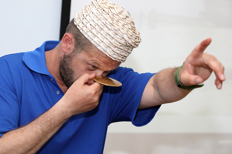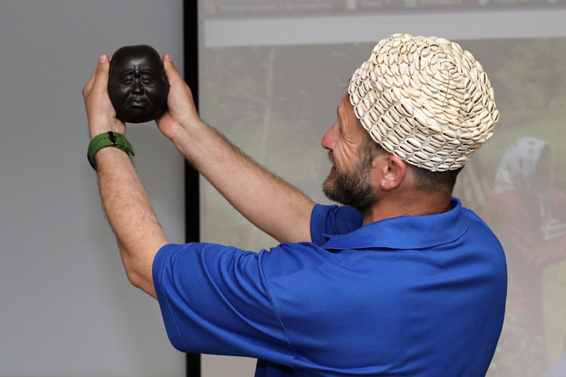 На встрече он продемонстрировал этнографические экспонаты, которые привез из разных стран: талисманы народов Азии и Африки, ритуальные статуэтки, а также национальную японскую обувь – гэта.