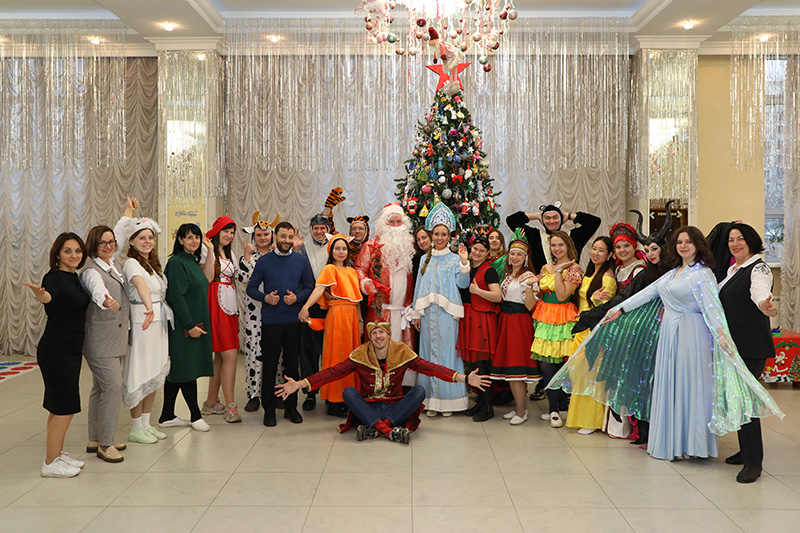 В холле Большого конференц-зала ребят ждала разнообразная и насыщенная анимационная программа с интересными играми и конкурсами, розыгрышами, мастер-классами, аттракционами (ледяной туннель, новогоднее радио, аэрохоккей, дартс, стрельба из лука), а также красочным представлением «Новогодние приключения доктора Айболита» с участием профессиональных актёров театра. По традиции был проведен конкурс «Юные таланты», участникам которого вручены памятные призы.