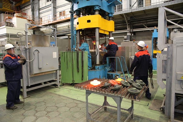 Изотермическая штамповка на воздухе обеспечивает формирование регламентированной структуры и достижение высоких и стабильных механических свойств. Участок изотермической штамповки, оснащенный специализированными прессами и изотермическими установками, которые позволяют изготавливать опытно-промышленные и серийные партии штамповок дисков и других деталей.