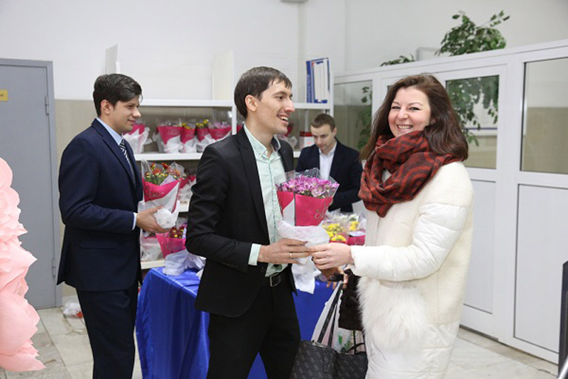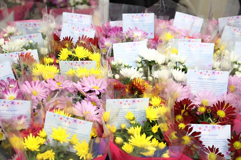 На проходной института наших дорогих женщин их коллеги поздравили с наступающим праздником, пожелали любви, счастья, благополучия и подарили цветы.