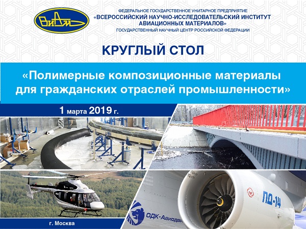 1 марта 2019 года Всероссийский научно-исследовательский институт авиационных материалов (ВИАМ) проведет круглый стол «Полимерные композиционные материалы для гражданских отраслей промышленности».