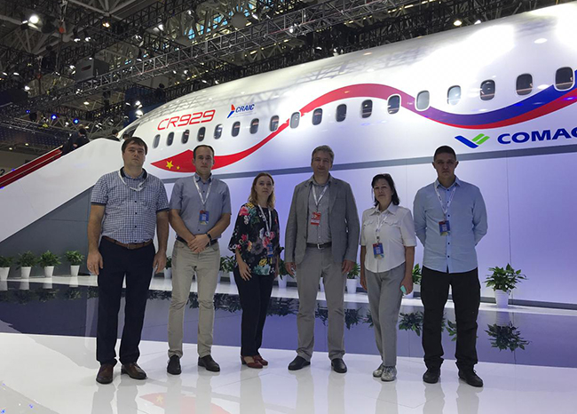 Делегация ВИАМ также посетила павильон COMAC, где был представлен макет фюзеляжа российско-китайского широкофюзеляжного дальнемагистрального самолета CR929.