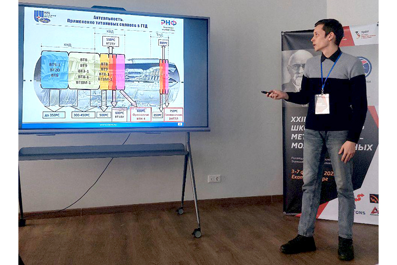 Представители НИЦ «Курчатовский институт» – ВИАМ приняли участие сразу в двух секциях, представив свои доклады. В секции «Аддитивные технологии» инженер Рустам Акбулатов рассказал о составе, микроструктуре и пористости образцов из интерметаллидного сплава на основе гамма-алюминида титана TiAl, полученных методом селективного электронно-лучевого сплавления. Его коллега, инженер Рустем Исламов доложил об особенностях получения металлопорошковой композиции из интерметаллидного сплава на основе орто-алюминида титана Ti2AlNb.
